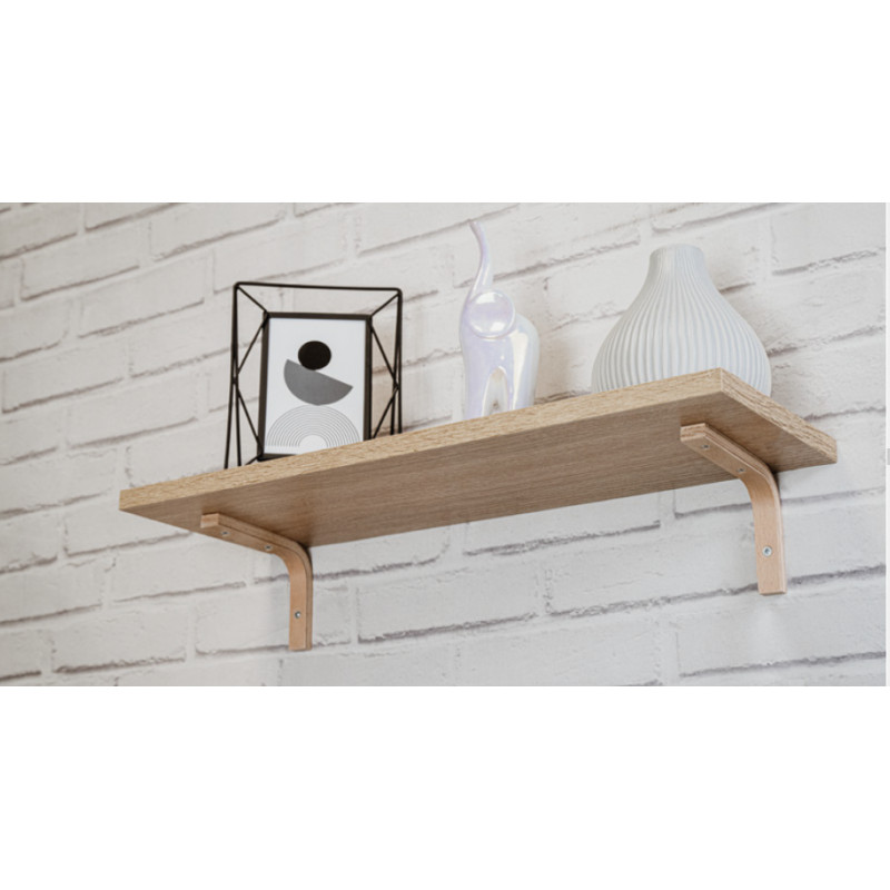 Jednoduché konzoly z ohýbané překližky. Světlá barva bukového dřeva způsobuje, že se zvlášť dobře hodí k policím vyrobeným ze stejného materiálu. Surové dřevo, ze kterého byly vyrobené, lze snadno natřít na libovolnou barvu lakem, barvou nebo mořidlem.