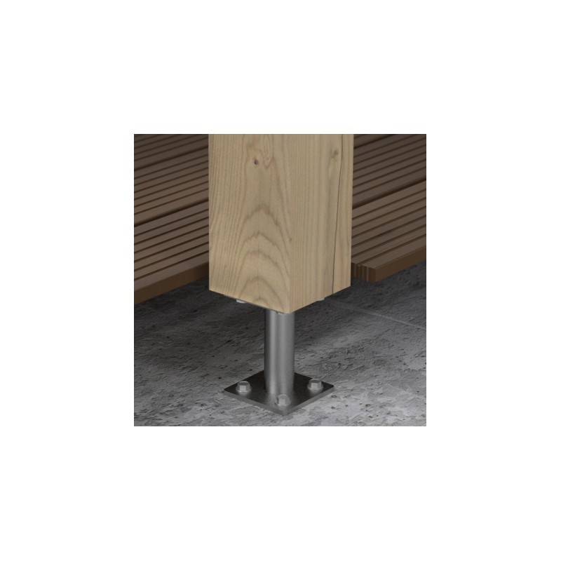 Základna používaná ke spojování s betonem dřevěných sloupů. T-kus umístěný v dolní části základny umožňuje opření trámu, čímž je zlepšená stabilita konstrukce a je zaručená dodatečná dilatace sloupu od základny.
