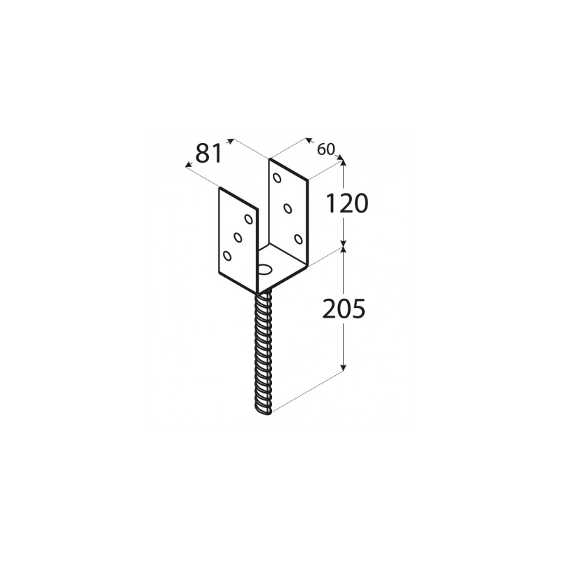 Kotevní patka sloupku ve tvaru "U" je určena pro připevnění hranolů do betonu. Tato patka je vhodná pro dřevěné hranoly široké 80 mm.