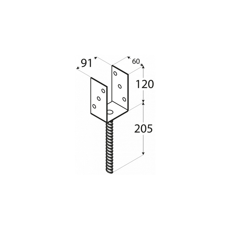 Kotevní patka sloupku ve tvaru "U" je určena pro připevnění hranolů do betonu. Tato patka je vhodná pro dřevěné hranoly široké 90 mm.