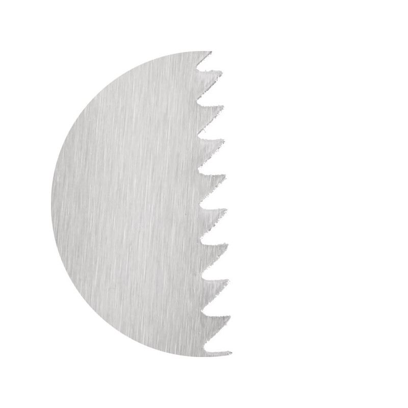 - Druhá strana (hrubší): Navržena pro efektivní a rychlé podélné řezy po směru vláken - trojúhelníkové zuby 10 TPI.