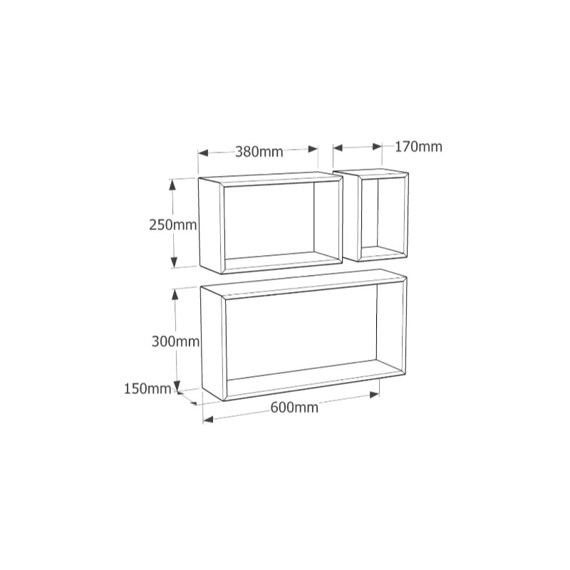 Sada 3 ks modulárních polic různých velikostí.