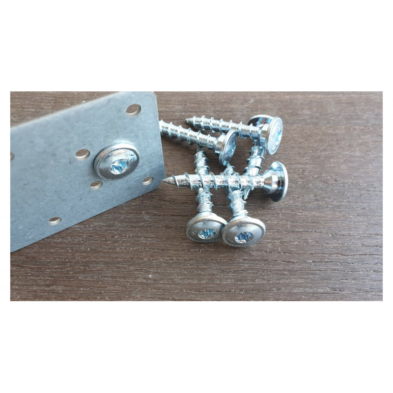 Tyto vruty mají speciální geometrii hlavy pro estetičtější spoj, osazení pod hlavou pro zvýšení únosnosti na střih, dostatečnou výšku osazení i pro tesařské kování ze silnějších materiálů, náběh před osazením pro snadné vklouznutí vrutu do otvoru v tesařském kování, hlubokou drážku Torx, jehlovou špičku pro snadné zakousnutí a povrchovou úpravu galvanickým zinkem.