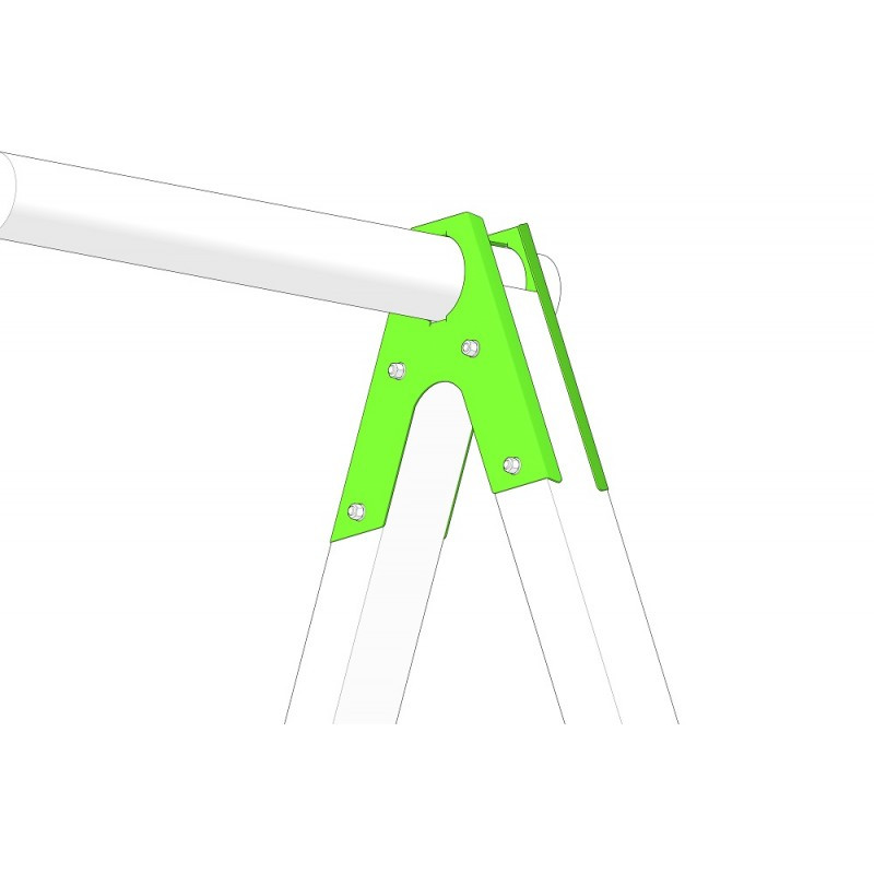 Spojka pro stavbu houpačky z dřevěných hranolů a vrchního kulatého trámu.