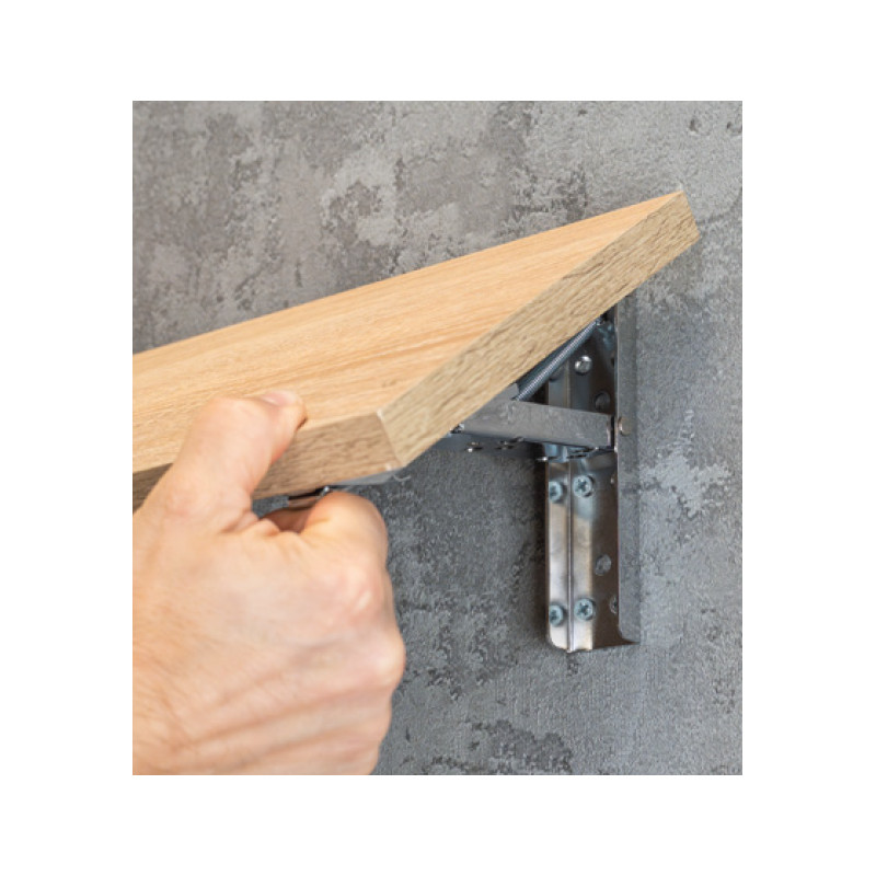 Skládací chromované konzoly se osvědčují zejména tam, kde je kvůli omezenému prostoru žádoucí možnost klopení desek či polic.