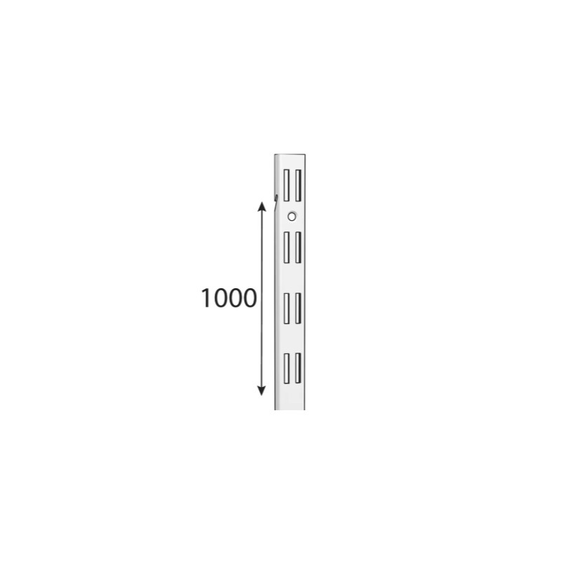 Svislá lišta určená k montáži konzol dvojitého policového systému a rámů regálových košů.