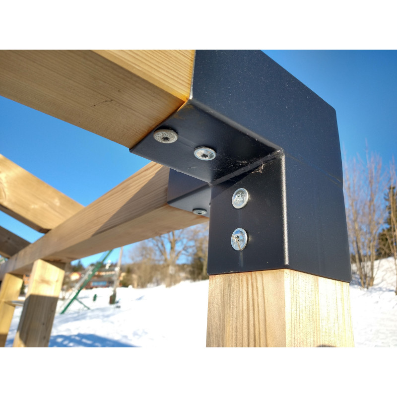 3. Použití/Montáž: Dřevěné trámy standardních rozměrů je nutné zakoupit samostatně. Doporučení k montáži: - montáž by měla být prováděna na stabilním, rovném povrchu, - před použitím se ujistěte, že jsou všechna spojení řádně utažena a zajištěna, - pro instalaci do země se doporučuje použít kotvy nebo zemní upevňovací prvky pro sloupky.