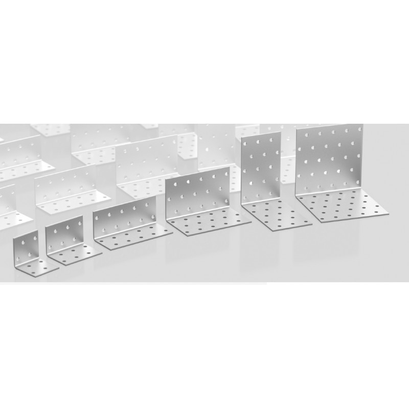 Standardní L profily s univerzálními otvory. Díky množství vyvrtaných otvorů lze pomocí těchto úhelníků provést mnoho jednoduchých i složitých spojů.