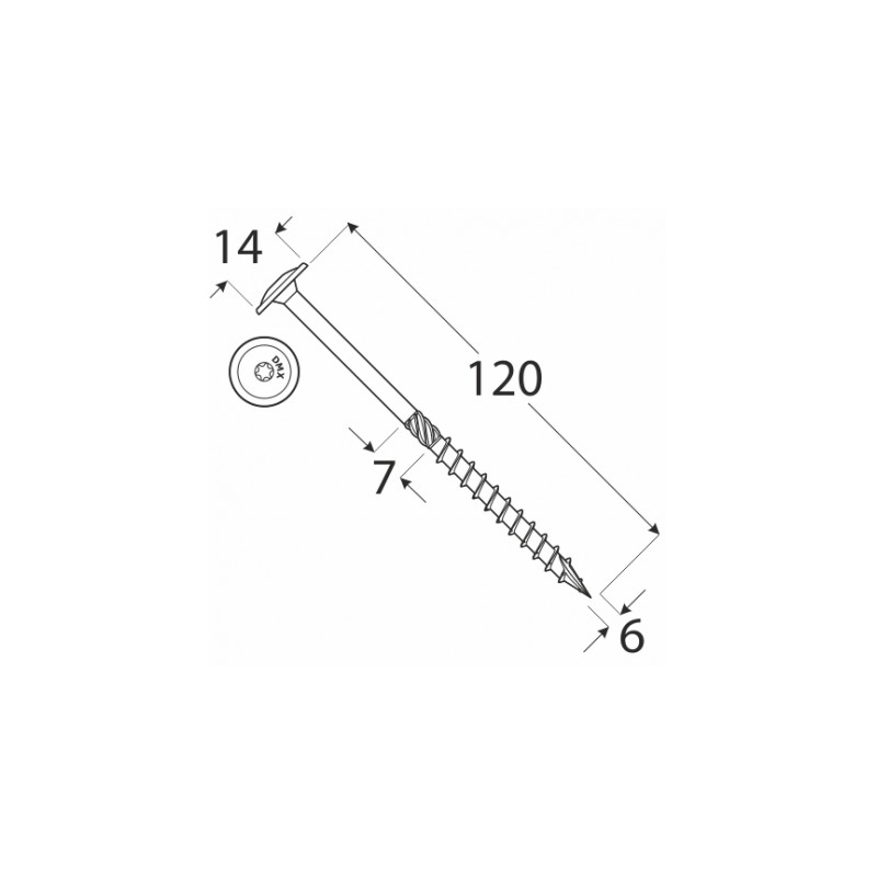 | Průměr | 6 mm přes závit, hlava 14 mm |