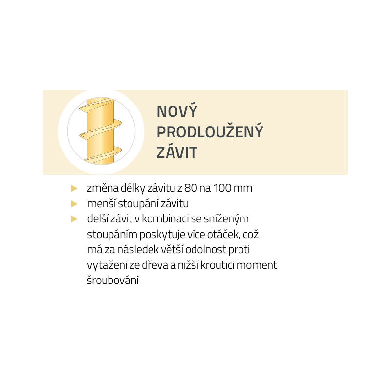 6. Označení délky na hlavě vrutu - umožňuje identifikaci i po úplném zašroubování vrutu.