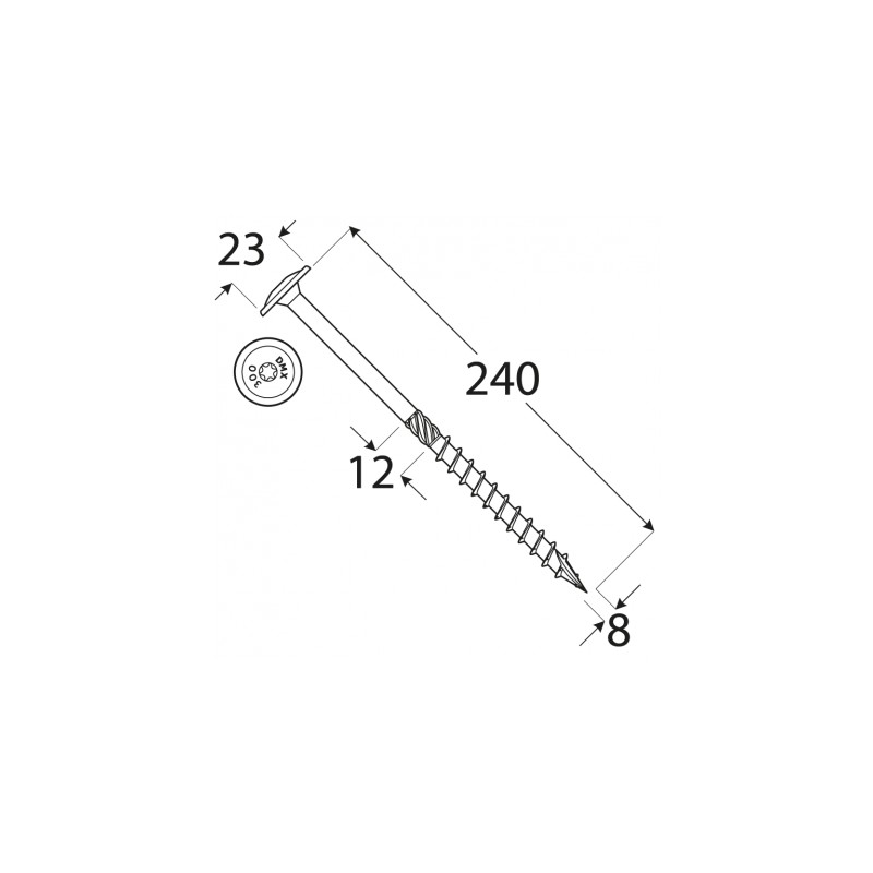 | Průměr | 8 mm přes závit, hlava 23 mm |