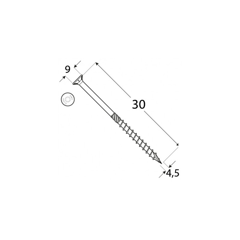 | Průměr | 4,5 mm přes závit, hlava 9 mm |