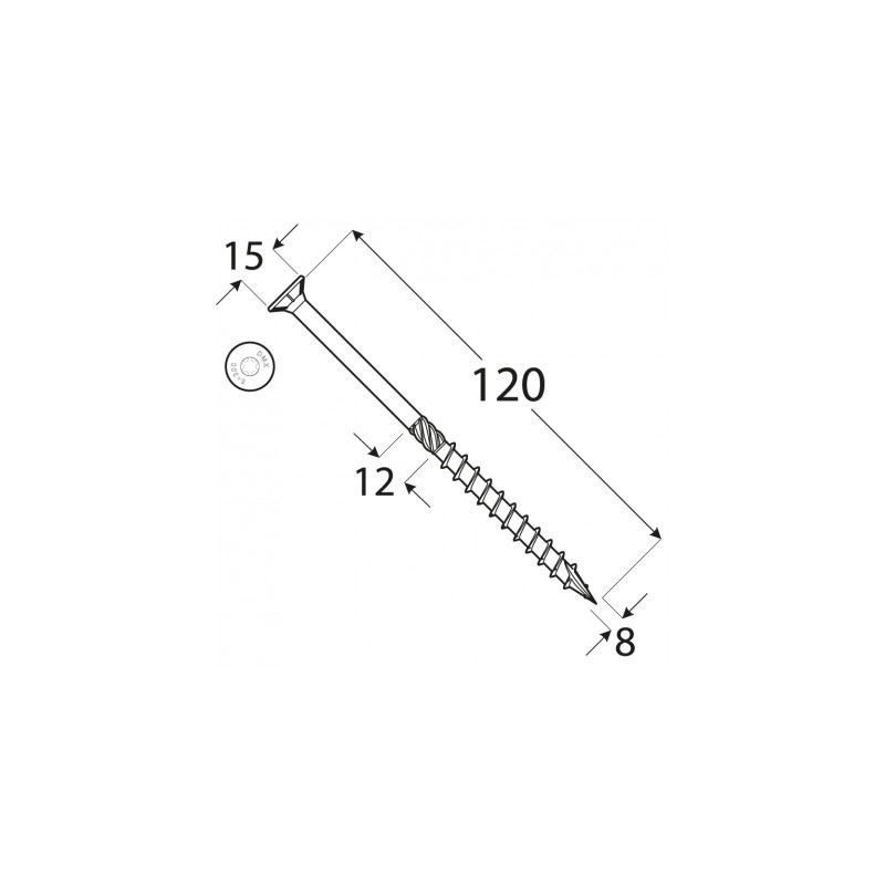 5. Řezné žebrování na spodní straně hlavy - zjednodušují zahloubení a zašroubování hlavy rovně s podkladem;