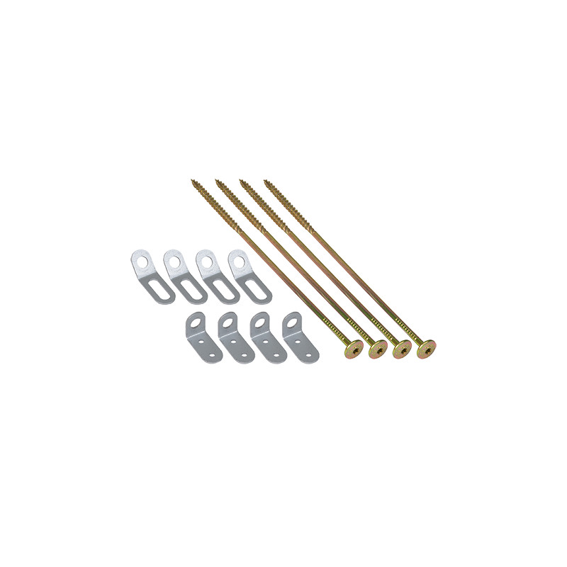Sada obsahuje čtyři dlouhé vruty CT 8 x 300, čtyři pravoúhlé úhelníky a čtyři úhelníky 135°.